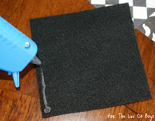 Cut felt into 4x4 inch squares and put hot glue around all edges
